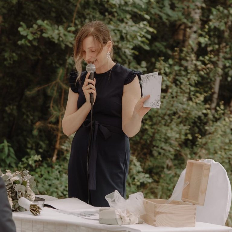 Steffi hat unsere Geschichte mit so viel Liebe zum Detail erzählt, dass wir uns in jeder Zeile wiedergefunden haben. Die Worte waren persönlich, humorvoll und gleichzeitig so emotional, dass auch viele unserer Gäste Tränen in den Augen hatten.
